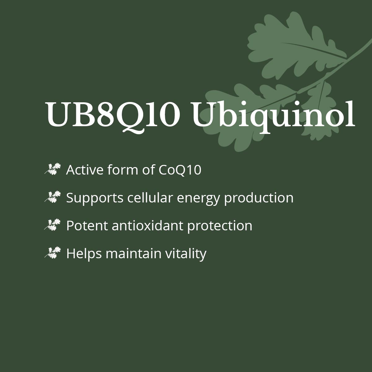 Provides 100mg of ubiquinol per serving using the branded Kaneka Ubiquinol™ ingredient.